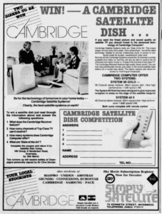 Press advertisement for Cambridge Satellite Dish, Highland News, 10 March 1990. Image: Highland News / British Library.