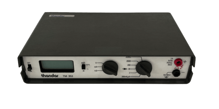 A more economical alternative to the TM351, the TM353 multimeter offered similar testing features across 26 manual ranges, suitable for checking power levels, signal flow, and component response in small circuits. While less precise—with a basic accuracy of 0.25%—it still provided dependable results for everyday electronics tasks. Its lightweight case and long battery life made it a practical tool for students, home users, and technicians alike, delivering professional capability at a more affordable price.