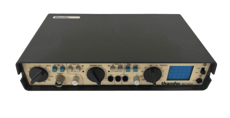 This portable oscilloscope displayed changing electrical signals over time, offering both engineers and advanced hobbyists a compact and affordable alternative to larger workbench models. Nearly identical to the earlier Sinclair SC110, it reflects the company’s rebranding from Sinclair Electronics to Thandar Electronics in the early 1980s—following an earlier transition from Sinclair Radionics. Thandar brochures continued to reference the original Sinclair factory site in England, reassuring customers that the instruments were still made in the same location, with familiar designs, pricing, and support.