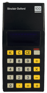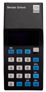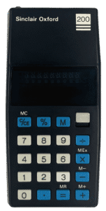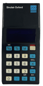 This black calculator was developed for Gillette, the razor company, as it explored entering the consumer electronics market. Known as the Gillette Personal Accountant (GPA), it offered basic arithmetic functions and an eight-digit LED display. Although short-lived, its design laid the groundwork for Sinclair’s Oxford range launched the following year. The moulded plastic casing was slightly rougher than later versions, but its internals and layout formed the blueprint for a new generation of affordable, British-made pocket calculators.