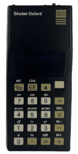 This scientific calculator brought advanced trigonometric functions—like sine, cosine and tangent—to a wider public at a much lower cost than most competitors. Its red LED display might indicate it as an earlier version within the 300 range. Although ideal for students and professionals, the Oxford calculators in general were known for draining their 9V batteries quickly. At the time, a specialist magazine even advised using a bulky battery for longer life—though this made the calculator too heavy for portability, effectively making it deskbound.