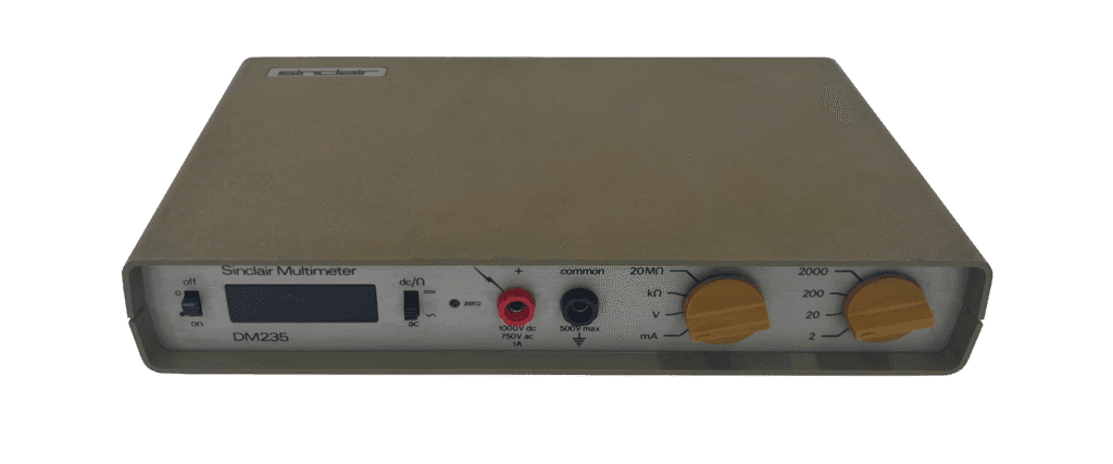 Marketed as a “personal digital multimeter,” the PDM35 marked a shift in Sinclair’s instrument range toward compact, affordable tools for field use. It reused the casing from Sinclair’s Oxford calculators, giving it the look and feel of a pocket calculator. It measured voltage, current, and resistance on an LED display, making it a practical choice for technicians, service engineers, and electronics hobbyists needing a lightweight device they could carry with them.