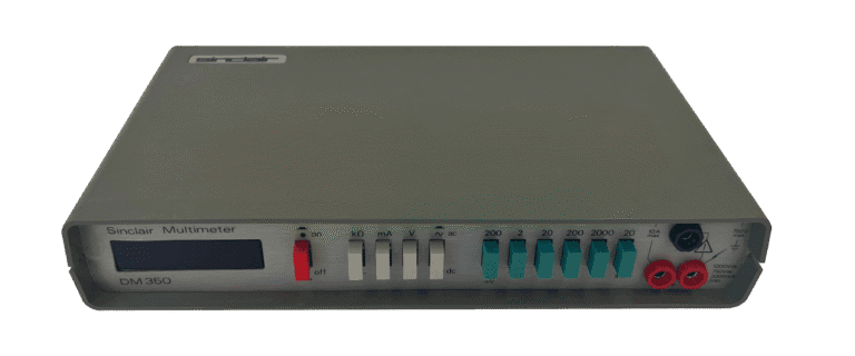 The DM350 built on the DM235’s foundation, expanding its measurement capacity to suit semi-professional users. Housed in the same understated casing, it offered settings for 34 different types or levels of electrical measurement—covering everything from low-voltage circuits to high-resistance components. This versatility made it suitable for more demanding testing tasks. Its reliability kept it in production into the 1980s, bridging the gap between Sinclair’s general-purpose meters and its high-end industrial models.