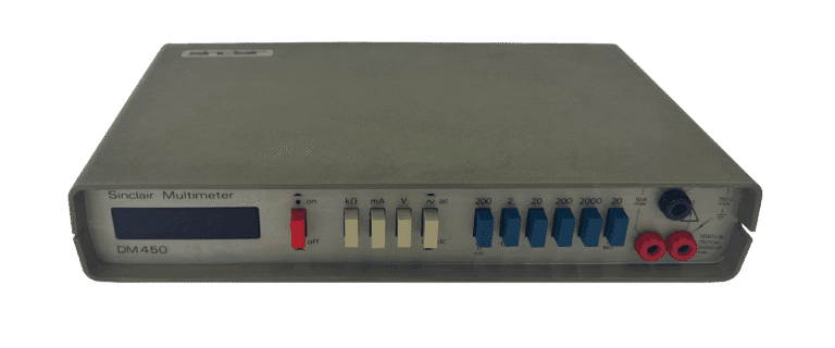 Designed for industrial use, the DM450 featured a 4½-digit LED display—allowing it to show results with greater detail than other models in the range. This higher resolution made it suitable for tasks where small variations in voltage or resistance needed to be measured precisely. Though externally similar to the DM350, its advanced capabilities placed it at the top of Sinclair’s instrument line. After Sinclair Radionics was restructured in 1979, the DM450 continued to be sold under the Thandar brand.