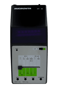 This digital multimeter shares both design and function with the Sinclair PDM35 and is believed to have been produced by Sinclair for Micronta, the in-house test equipment brand of Radio Shack. Housed in the same compact black casing used for Sinclair oxford calculators, it allowed users to measure voltage, current, and resistance. Marked “Made in England,” this example reflects how British-designed instruments reached international markets through rebranded partnerships in the late 1970s.