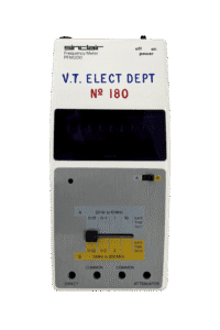 The PFM200 measured the frequency of electrical signals—an essential task in testing radios, clocks, and timing circuits. It displayed readings on an LED screen and could detect signals from 20 Hz to 200 MHz, covering everything from the slow pulses of household power to the faster signals used in broadcast and computing equipment. Like the PDM35 multimeter, it reused the casing from Sinclair’s earlier Oxford calculators, combining compactness with practicality. One of the final instruments produced under the Sinclair Radionics name, this example also carries a mark from a previous owner: “V.T. Elect. Dept. No. 180.”