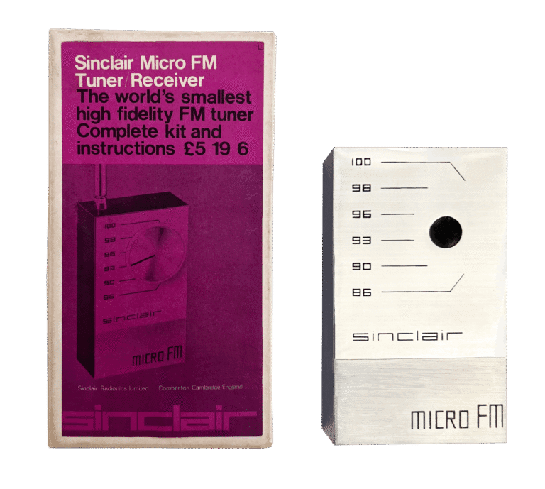 Released a few months after the Micro-6, the Micro-FM was a portable FM radio kit with a brushed aluminium front panel and tuning dial (missing in this example). It was advertised as having seven transistors and was designed for the growing—though still limited—FM radio network in the UK. Sold for home assembly, it reflected Sinclair’s continued focus on miniaturised, user-built electronics at a time when FM broadcasting was expanding and portable listening was gaining popularity
