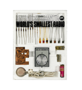 Sold as “Britain’s smallest radio,” this DIY kit let users build a working AM receiver at home. Its internal antenna, compact case, and magnetic earpiece were all designed to fit neatly into a pocket-sized unit. Features like automatic gain control and bandspread tuning were intended to improve reception of popular UK stations such as BBC Radio 1, launched that same year. Cheaper than the ready-built version, it reflected Sinclair’s approach to affordable, self-assembled consumer electronics.