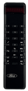 This Sinclair Sovereign, customised with a Ford logo, was likely distributed as a corporate gift to employees or clients. Designed by John Pemberton, the Sovereign combined scientific and memory functions with a sleek pressed steel casing. One advert claimed it took four years to perfect, while a separate 1977 Sunday Times ad promoted the Sovereign as a marker of class and distinction. Promotional versions like this one show how calculators could be used as tools of branding and aspiration—for both Sinclair and its commercial partners.